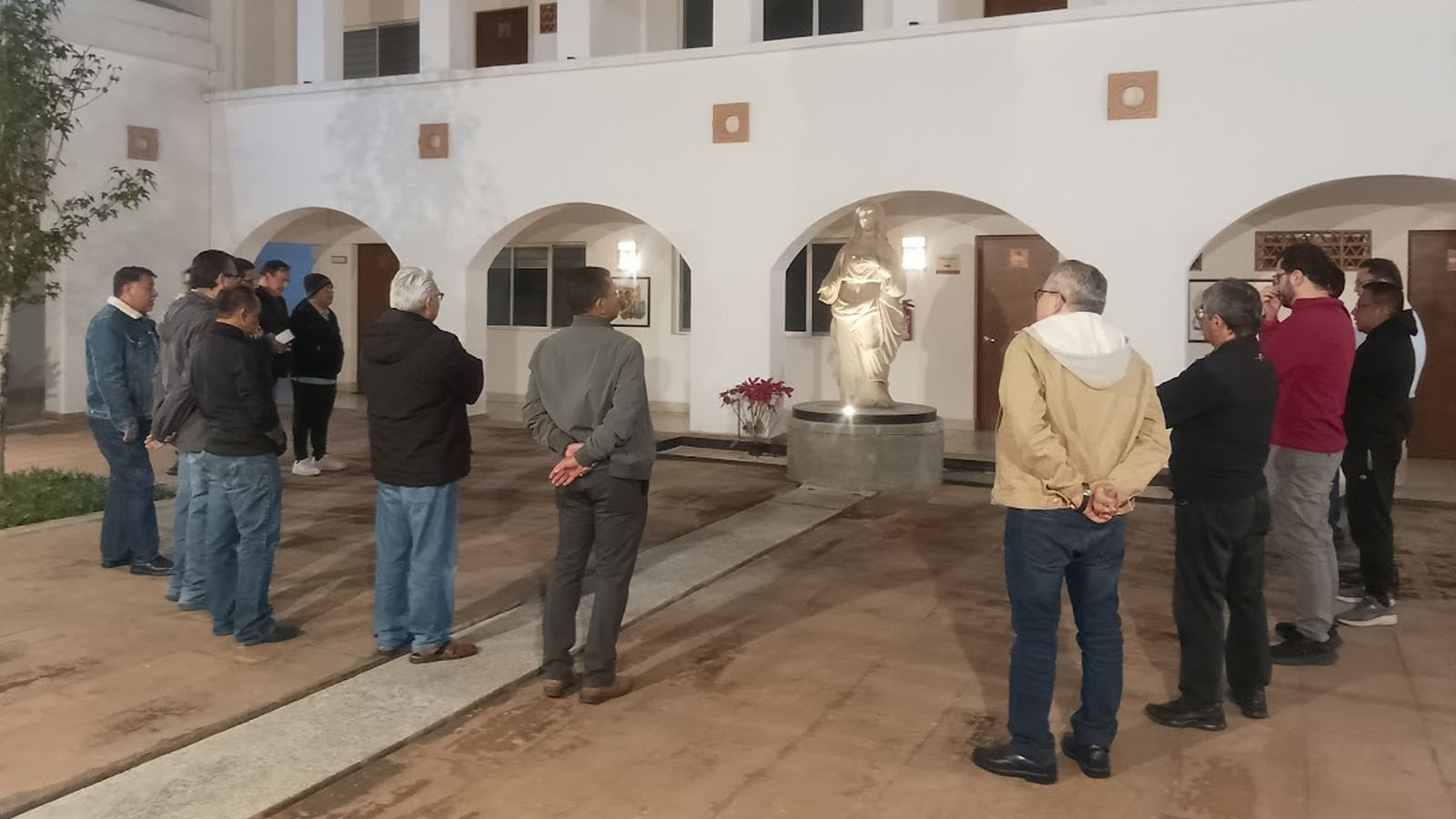 Por la noche terminamos el taller y nos fuimos al patio “Sinodalidad” del Centro Claretiano de Espiritualidad para vivir un momento mariano en torno a la Madre “formadora de misioneros", ahí rezamos y gozamos intensamente nuestra filiación cordimariana.