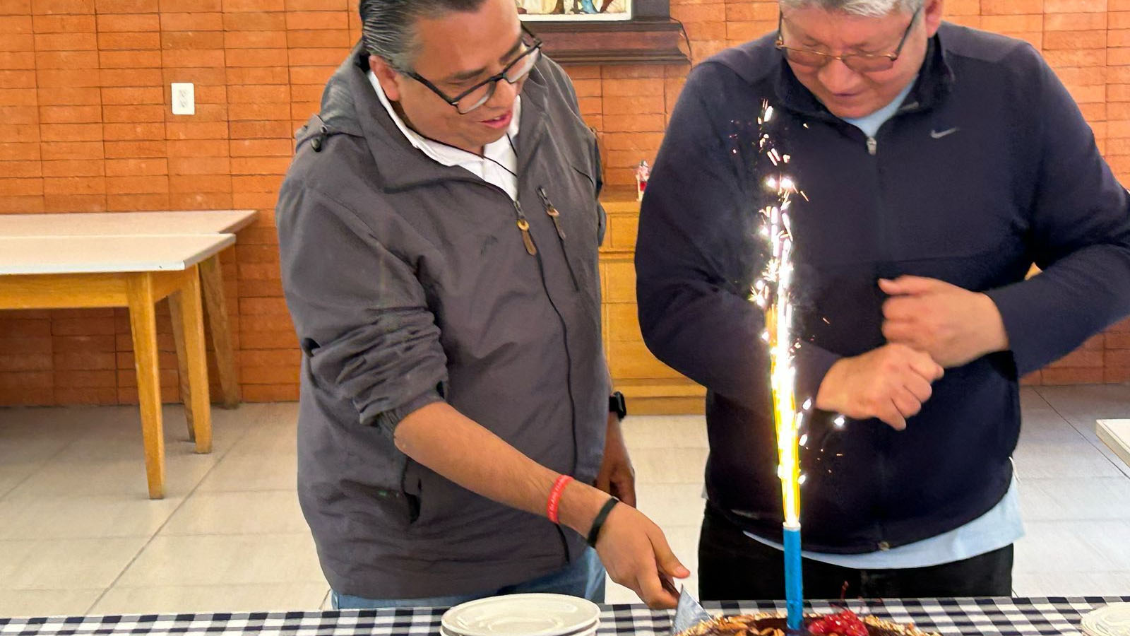 Por la tarde degustamos una sabrosa “taquiza” y festejamos con un pastel a los padres Juan Carlos González Carrera, por su reciente ordenación sacerdotal, y a Rogelio Carmona, anticipando su cumpleaños próximo. Luego, continuamos nuestro taller.