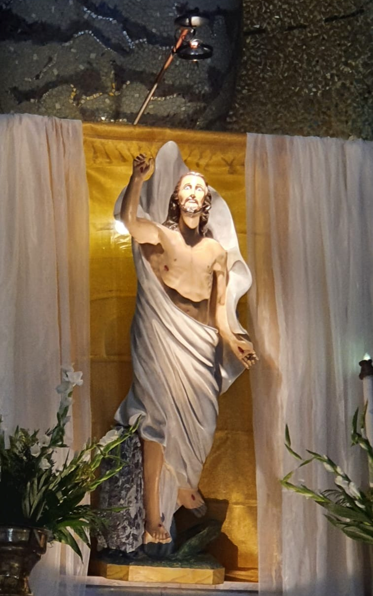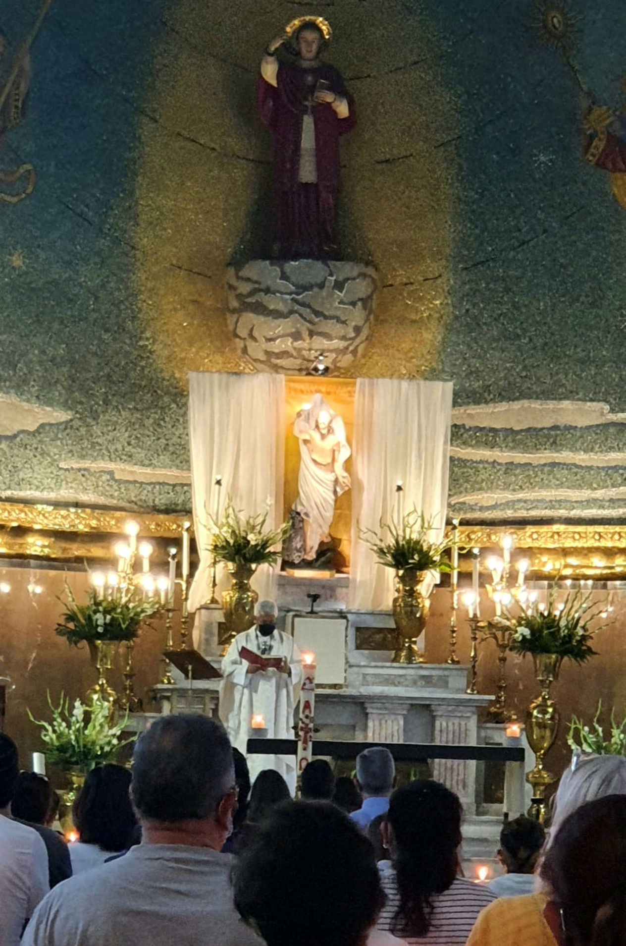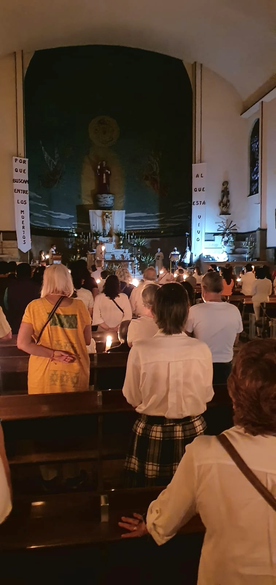 Después de que se entonó el Pregón Pascual y las distintas lecturas que forman parte de la liturgia de la palabra y por fin sonaron las campanas y se encendieron las luces del templo para proclamar la gloria de la Resurrección de Cristo.
