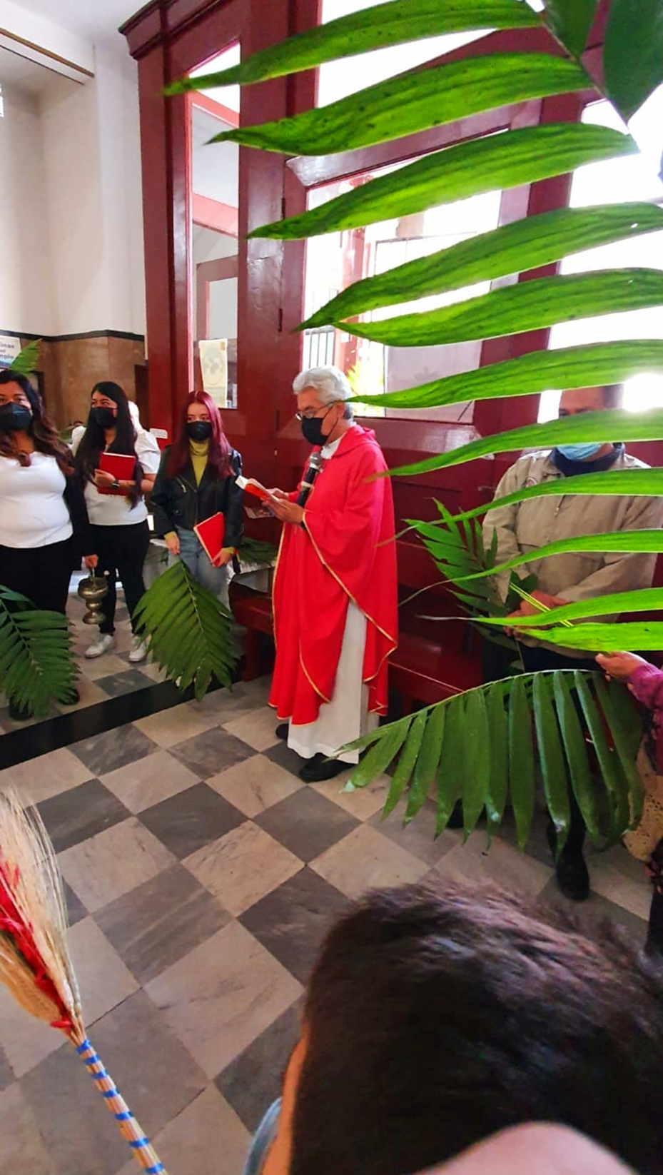 Y así fue como se llevaron a cabo estas ceremonias, empezando el 10 de abril con el Domingo de Ramos, donde en la compañía de los feligreses asistentes a nuestra misa de las 10:00 am presidida por el Padre René Pérez Díaz, cmf, se hizo la bendición y procesión de las palmas recordando la entrada triunfal de Jesús a Jerusalén, aclamado como el Mesías y recibiéndolo con palmas y ramos de olivo.
