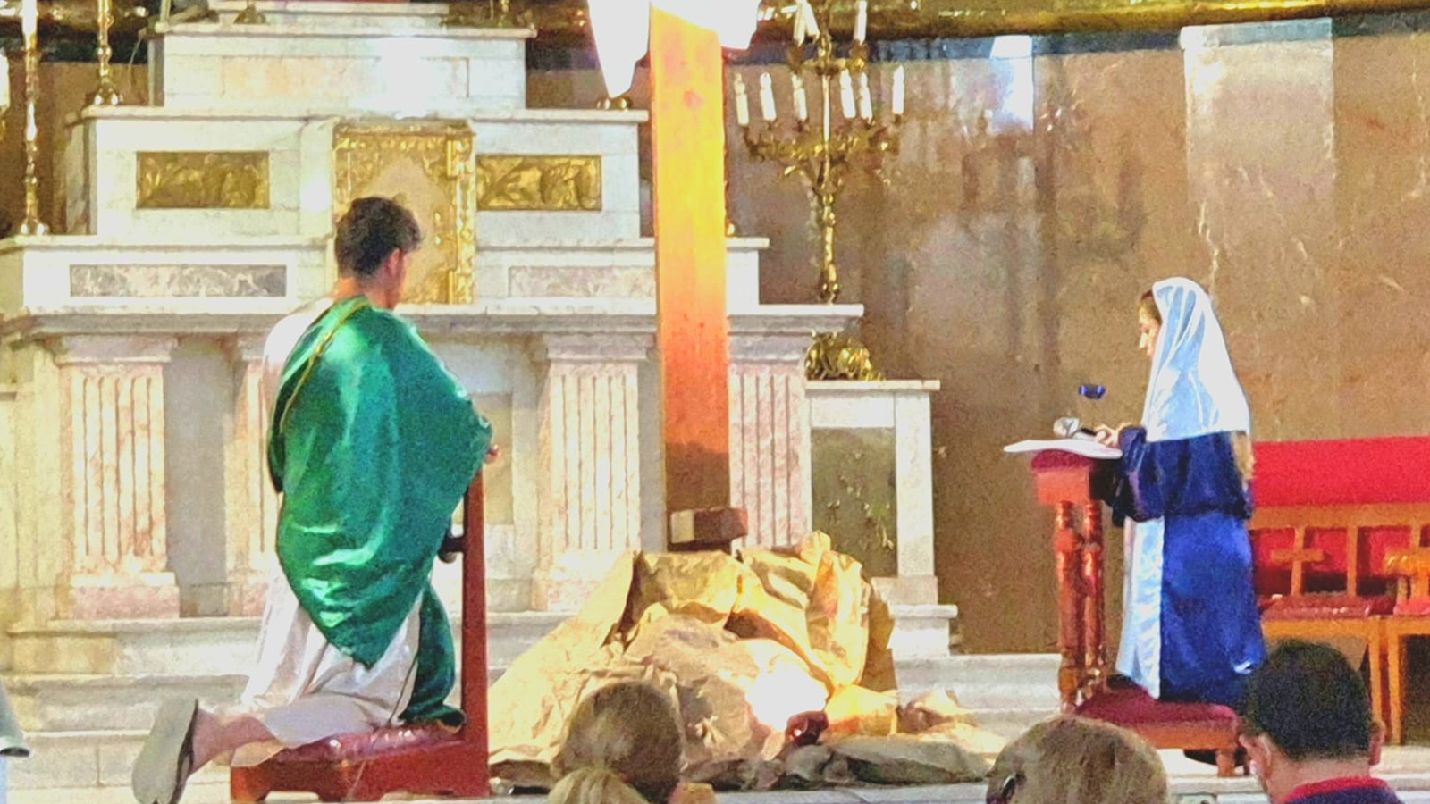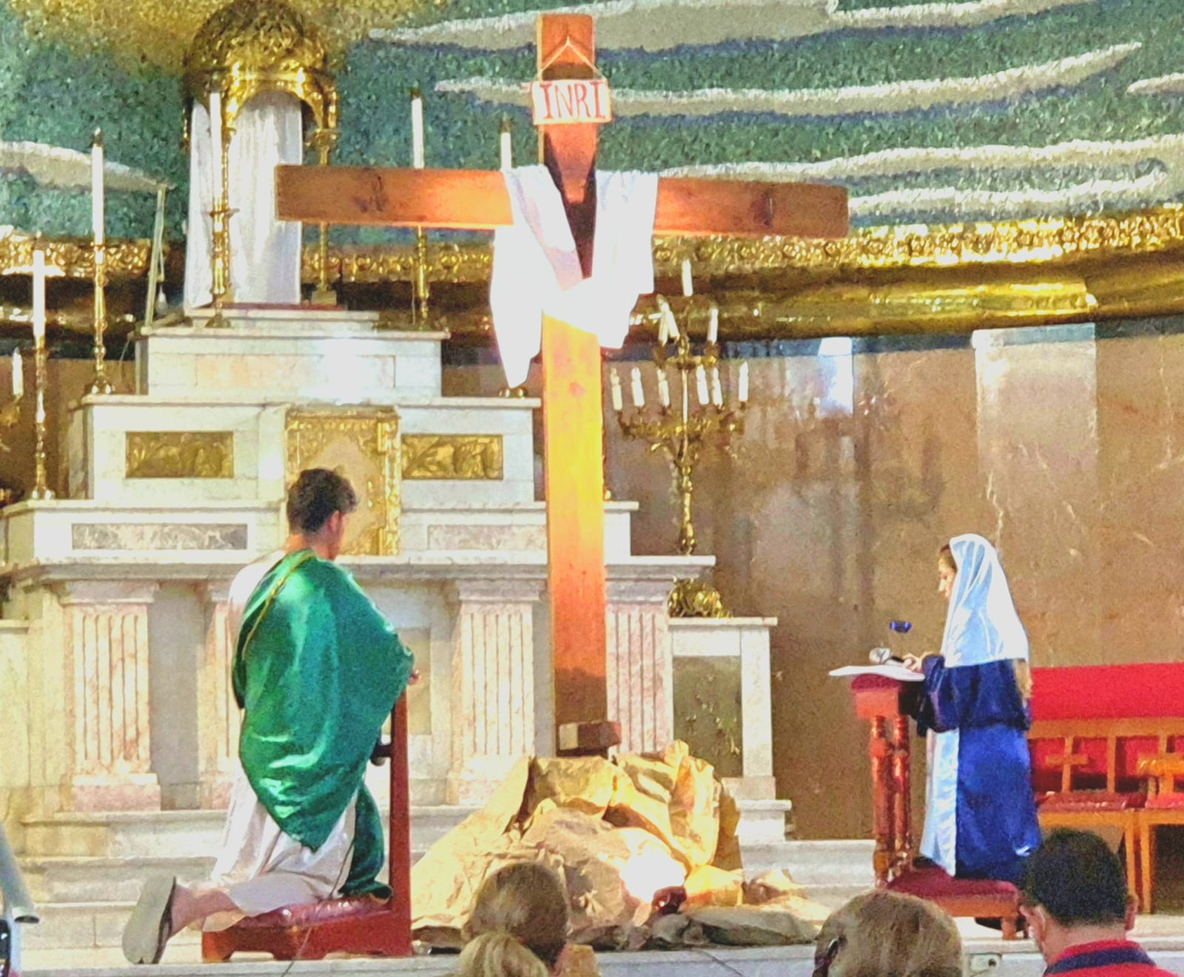 Por la tarde, a las 18:00 hrs, el Padre Héctor Núñez, cmf, encabezó la celebración de la Pasión del Señor, que concluyó con la adoración de la Cruz, el pésame a la Virgen mediante el rezo de sus siete dolores: la profecía de Simeón, la huida a Egipto, el Niño perdido en el Templo, el encuentro con Jesús camino al Calvario, la muerte de Jesús en la Cruz, recibir el cuerpo de Jesús cuando es bajado de la Cruz y la colocación del cuerpo de Jesús en el Sepulcro. La conmemoración de ese día terminó con una representación del grupo teatral Mares, grandes amigos de la casa.