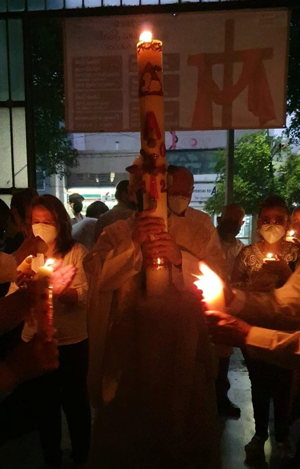Se llevó a cabo la bendición del fuego y se encendió el Cirio Pascual, que simboliza al Cristo Resucitado, para que el Padre René Pérez Díaz, cmf, encabezara la procesión dentro del Templo entonando “Luz de Cristo” y compartiendo el fuego para que toda la comunidad pudiera encender sus cirios.
