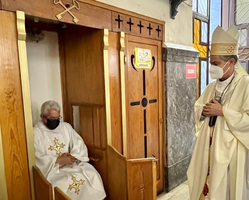 En la celebración, presidida por Don Luis Martín, se tomó la profesión de fe al nuevo párroco y se le fue conduciendo por los distintos signos litúrgicos (altar, ambón, bautisterio, confesionario, sagrario y sede) que indican el empeño y labor de animación y guía parroquial.
